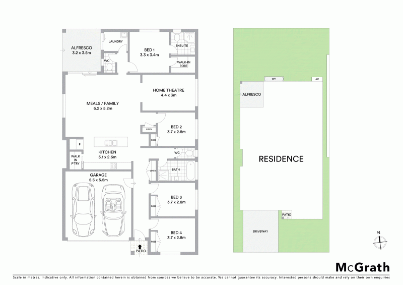 - Automatic double garage, internal entry to home
