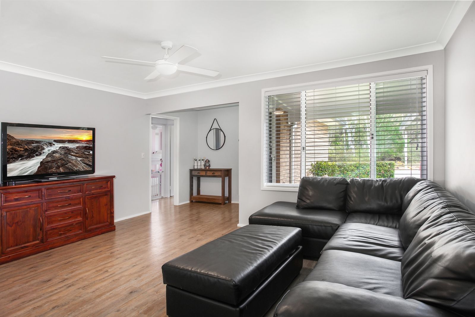 - Four bedrooms with built-in robes and ceiling fans