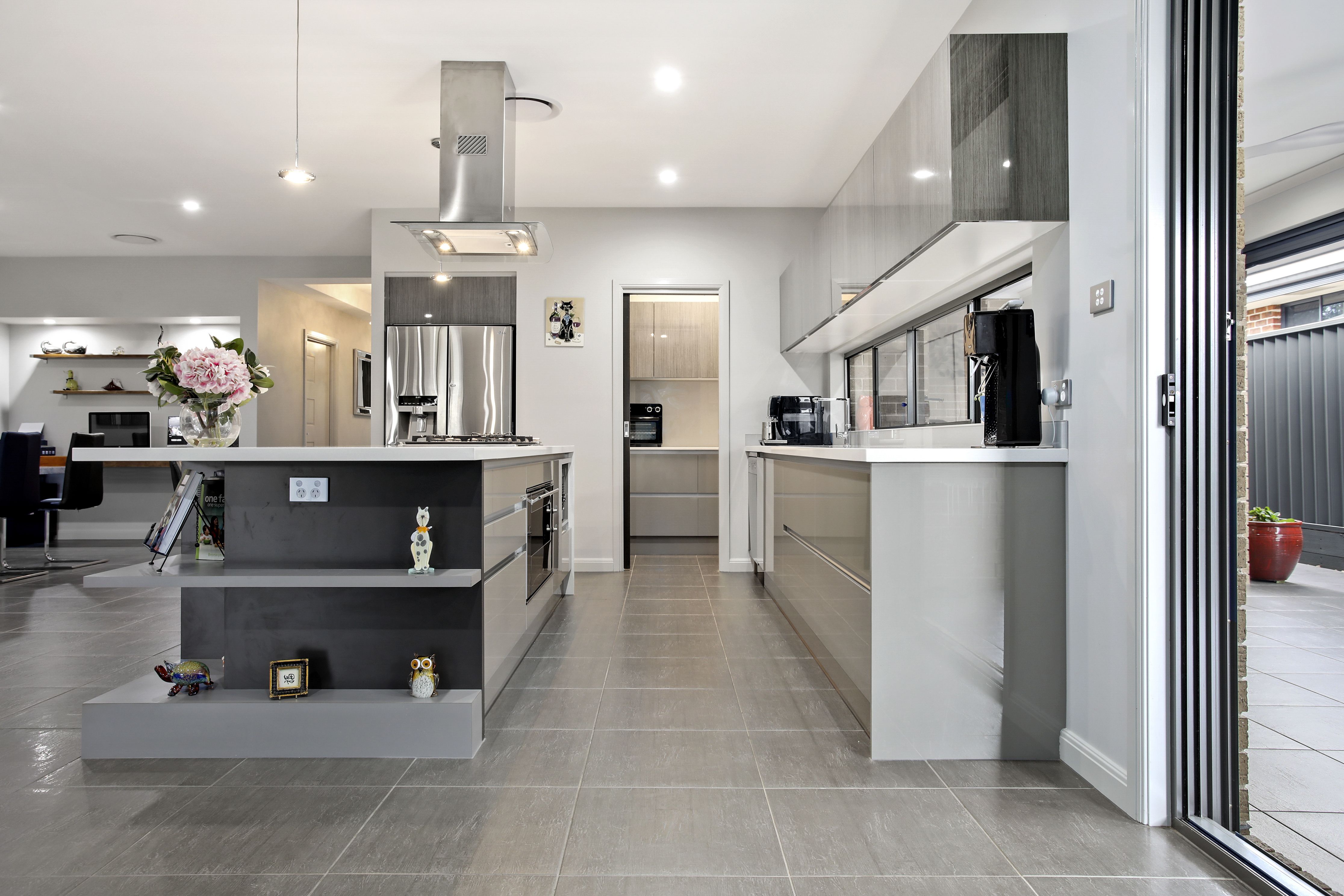 - Kitchen with CaesarStone benchtops, butler's pantry and premium appliances