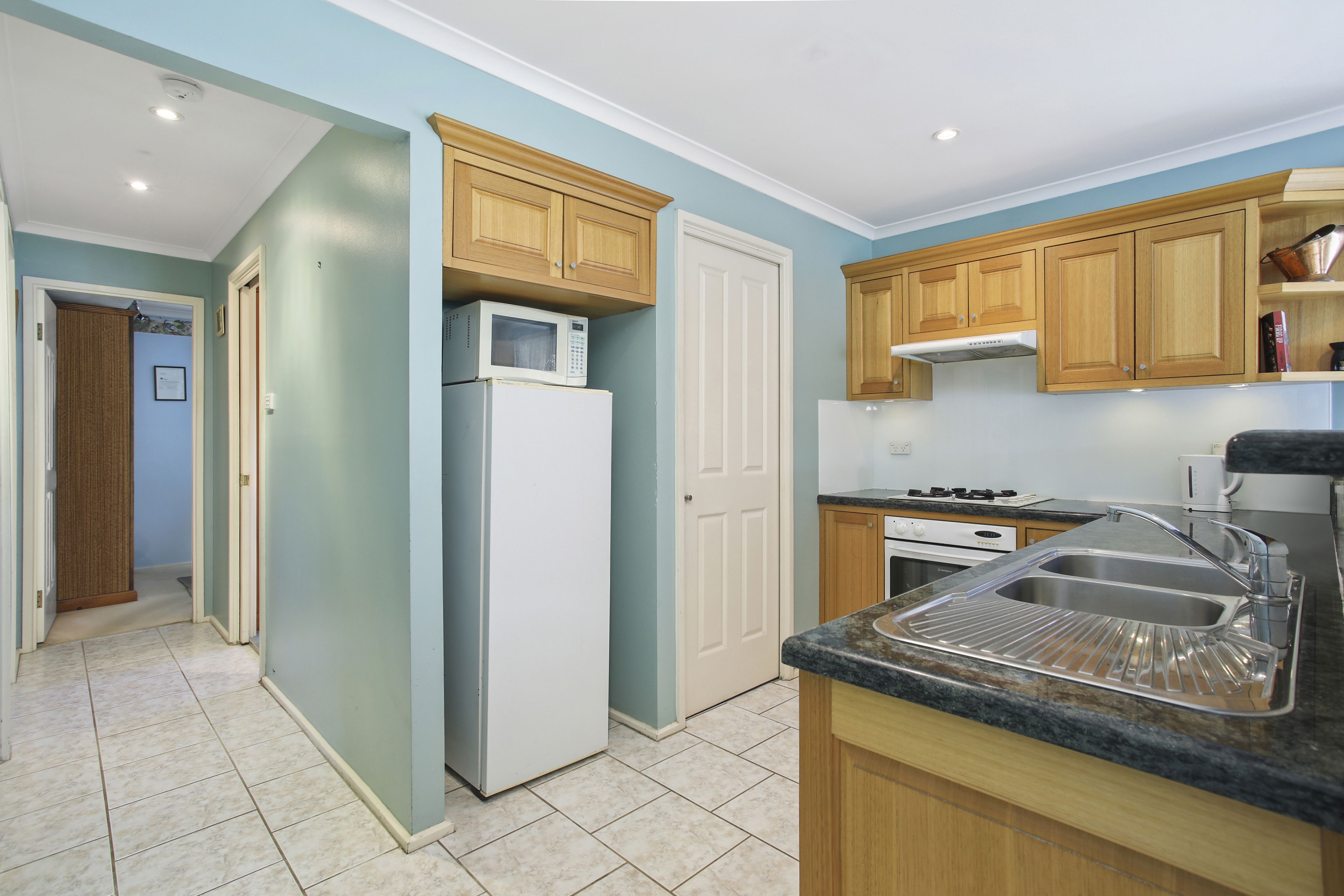 • Spacious timber kitchen with gas stove and fan forced electric wall oven