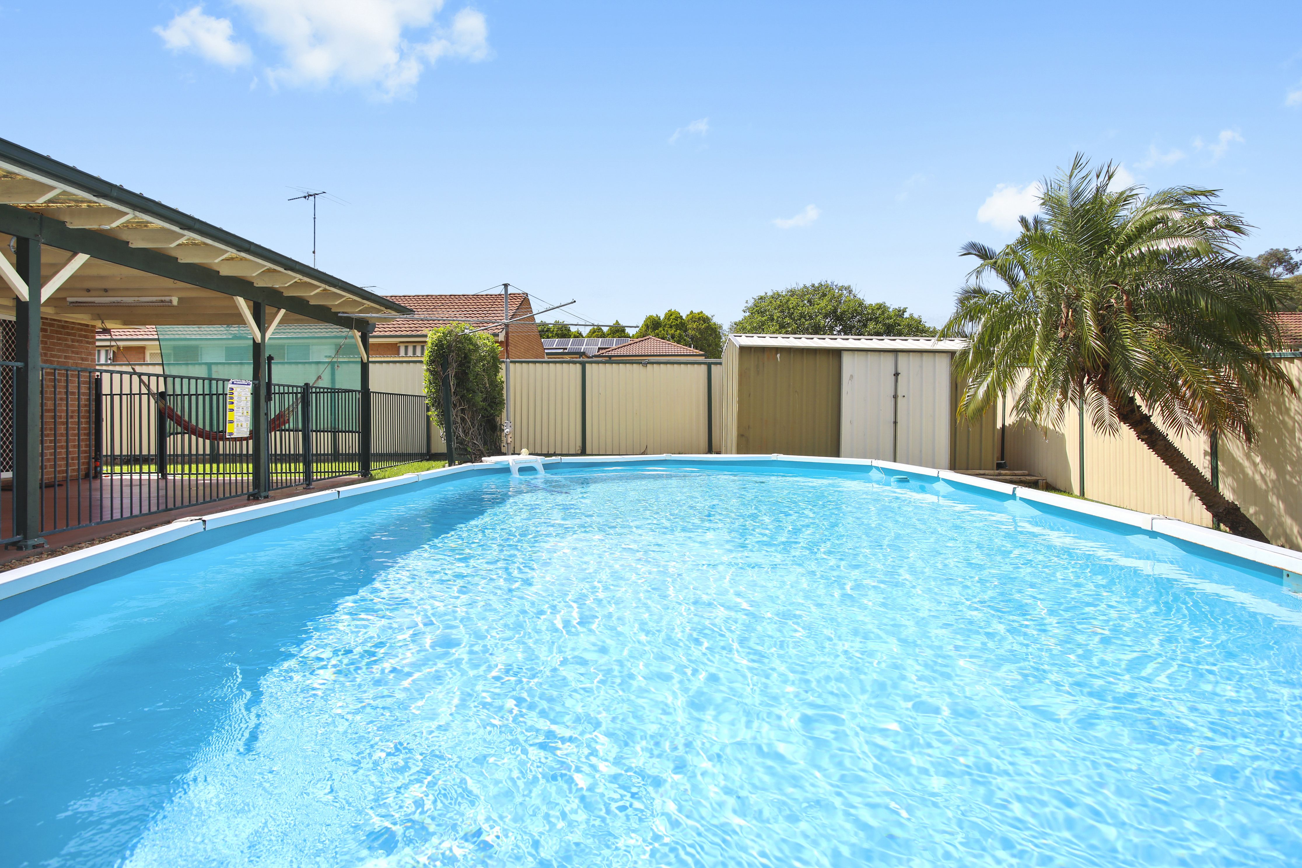 • Above-ground pool and a spacious backyard
