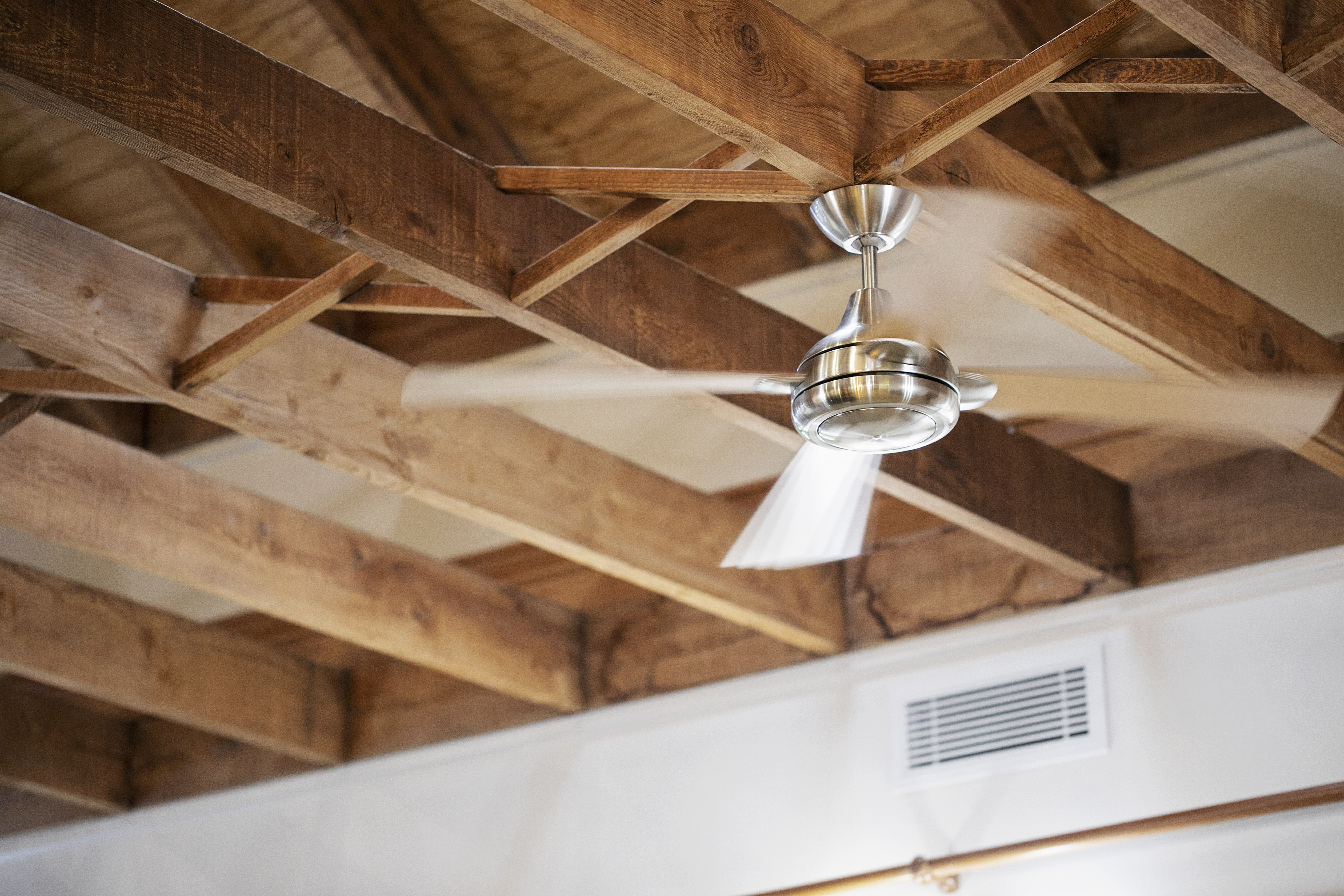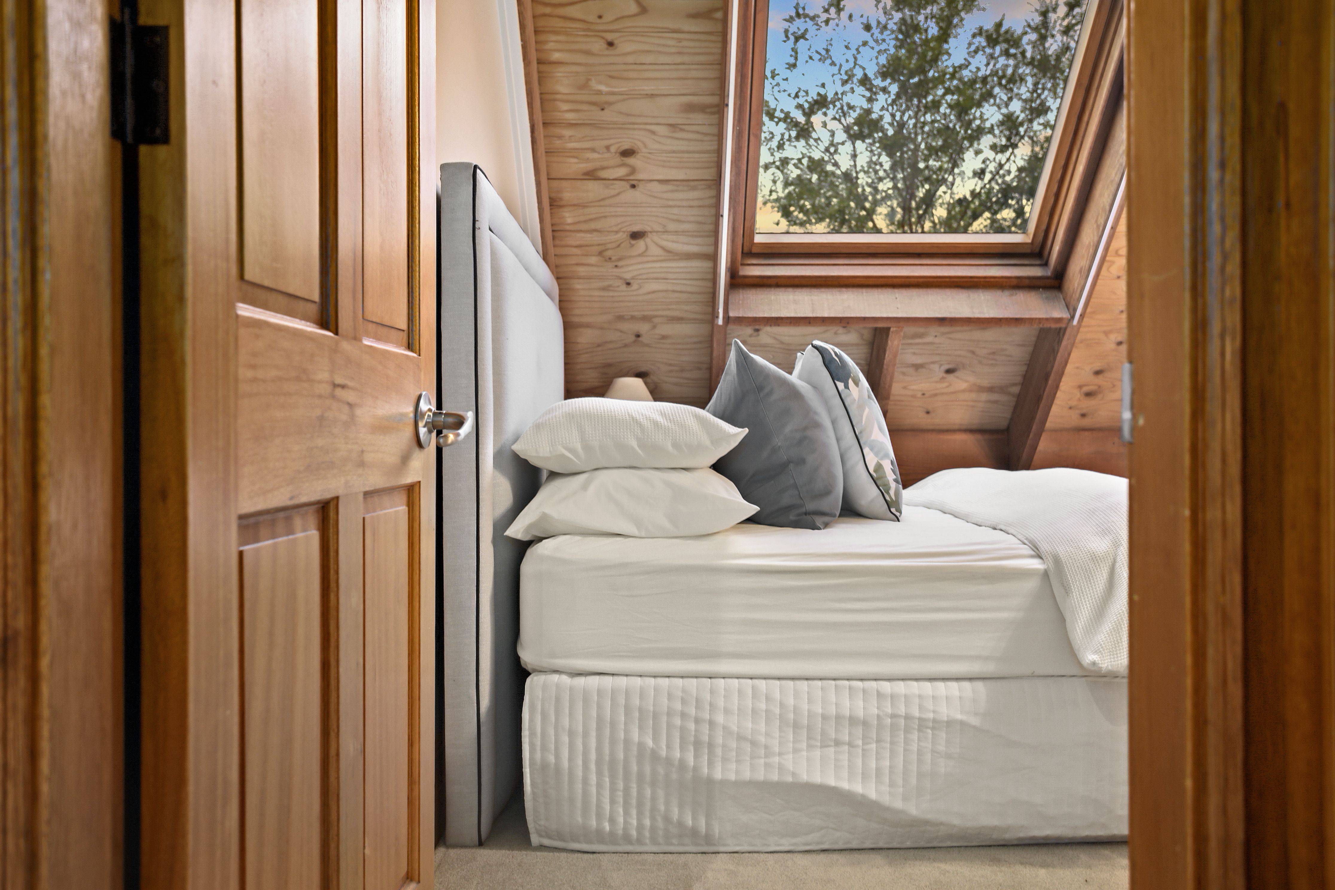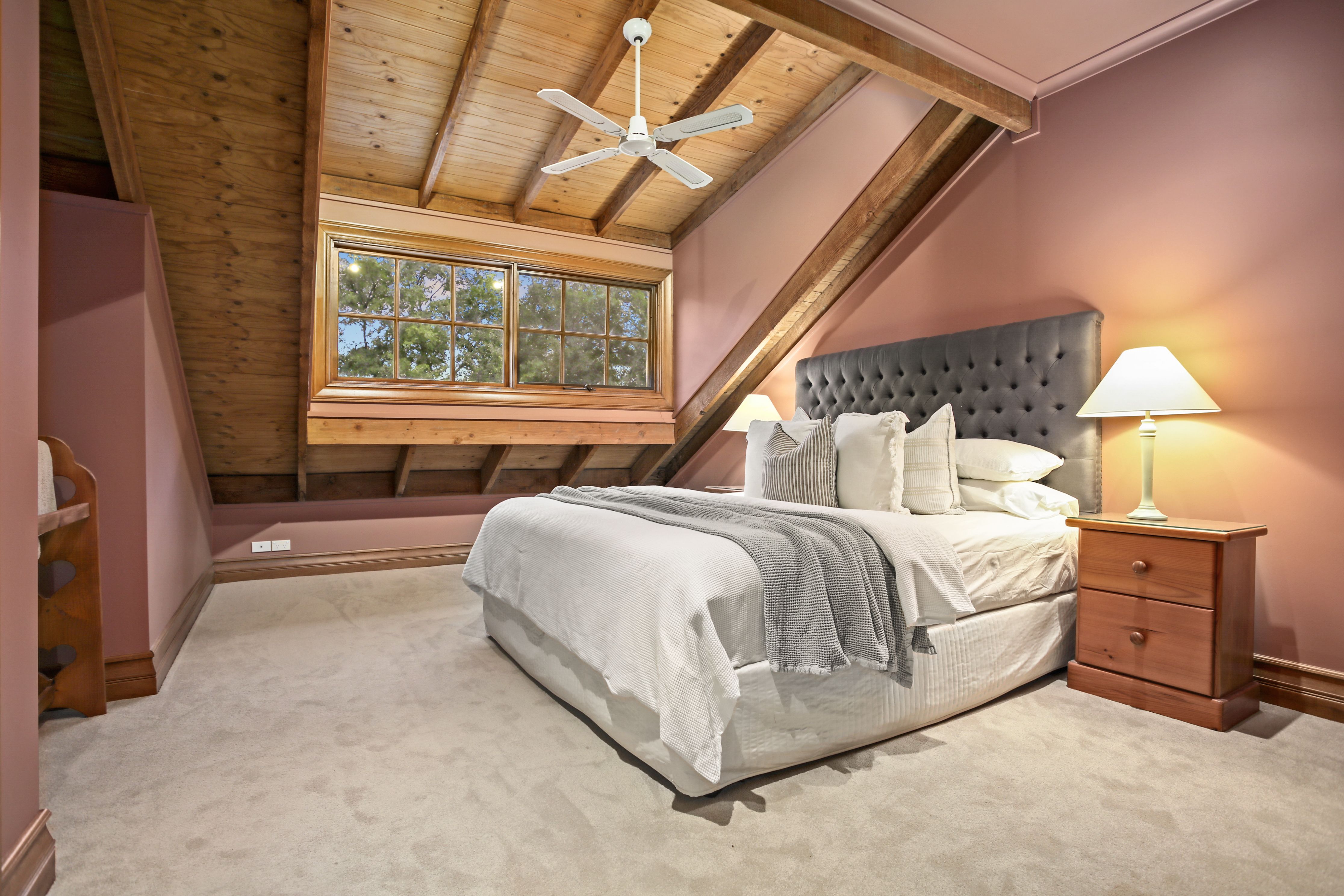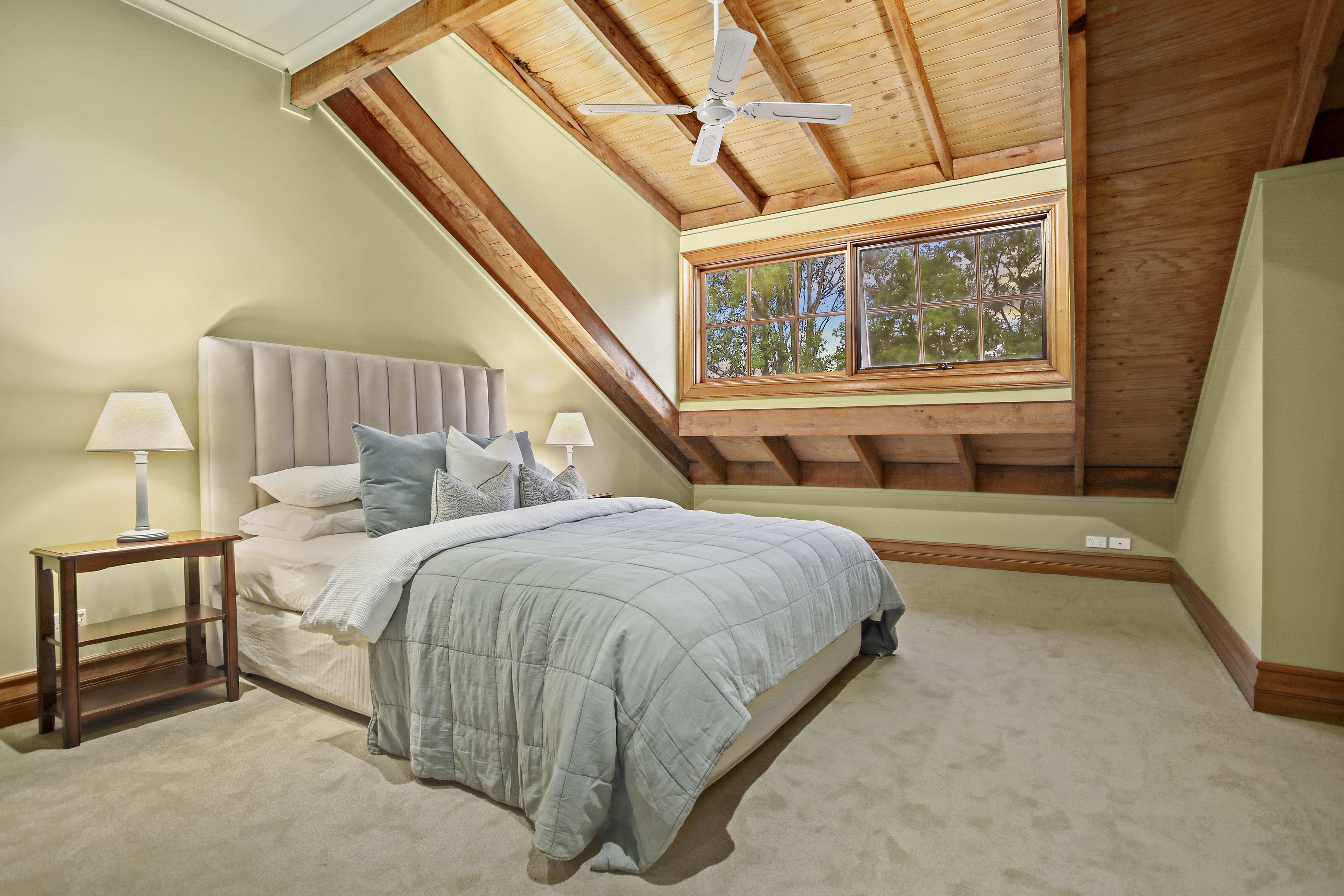 - Soaring ceilings with exposed timber beams and void area connects the two levels